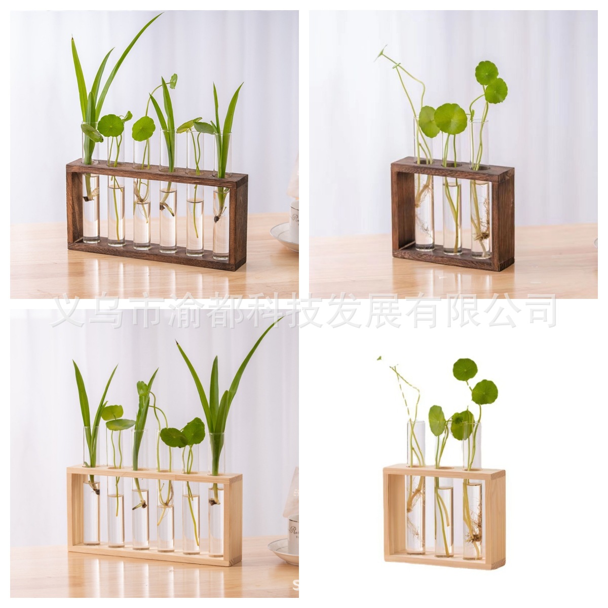 クリエイティブな水耕木製棚植物装飾装飾品透明ガラス緑植物フラワーアレンジメント花瓶装飾品木製工芸品