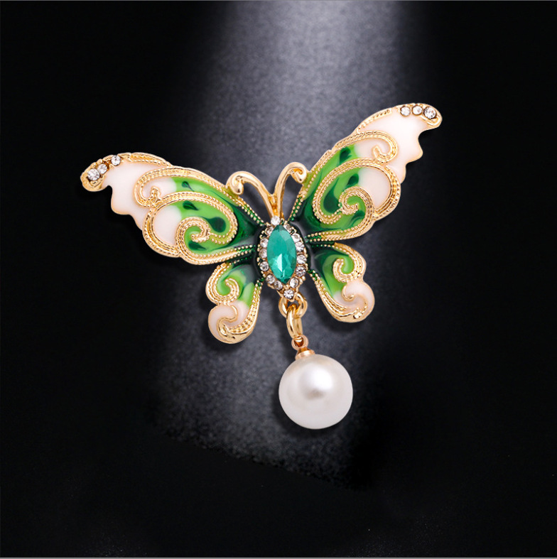 エナメル色絵蝶ブローチ女性高级感ハイエンド大気豪华チャイナドレスコートブローチコート気质ピン