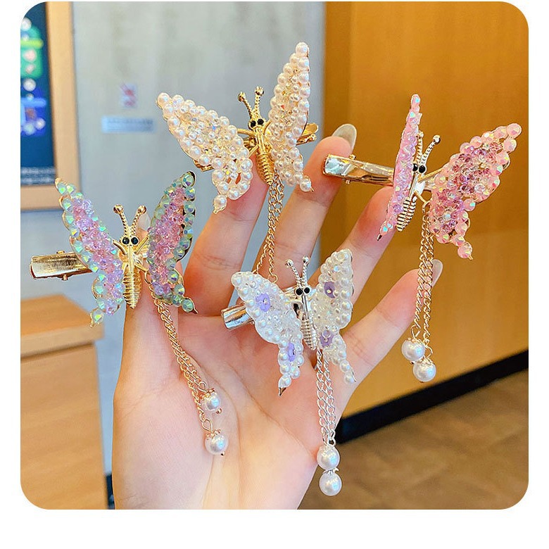 韓国版の超仙の立体のドリルのヘアピンは動くことができます水晶の蝶のヘアピンの髪飾りの優雅な気質のフリンジヘアの女性
