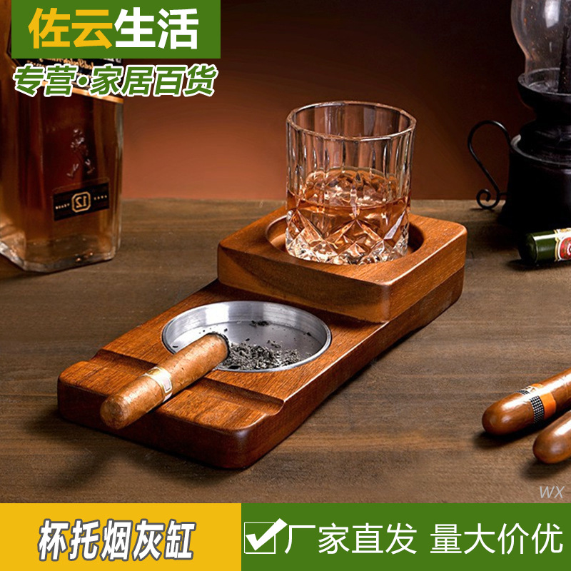 レストランのバーの創意的な木製のウイスキーの杯は灰皿の2つの一体型の酒の杯の棚の酒の杯の棚の収納箱になります。