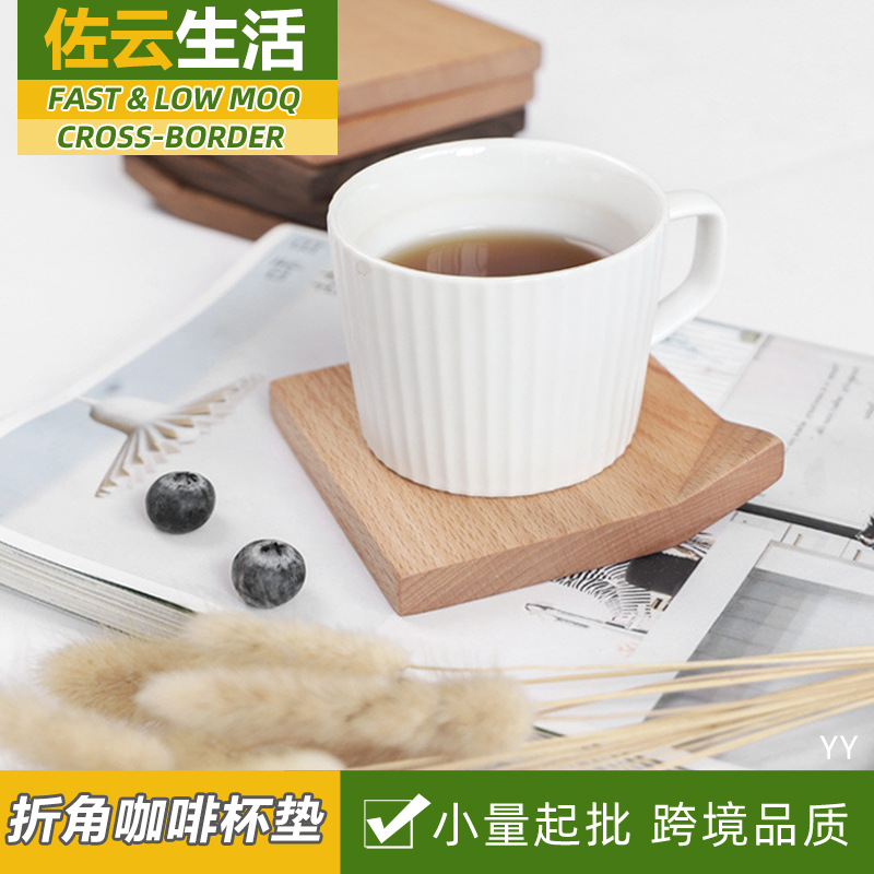 創意的な角を折ったコーヒーカップはホテルの民宿の日本式の胡桃木の断熱カップを敷きます。