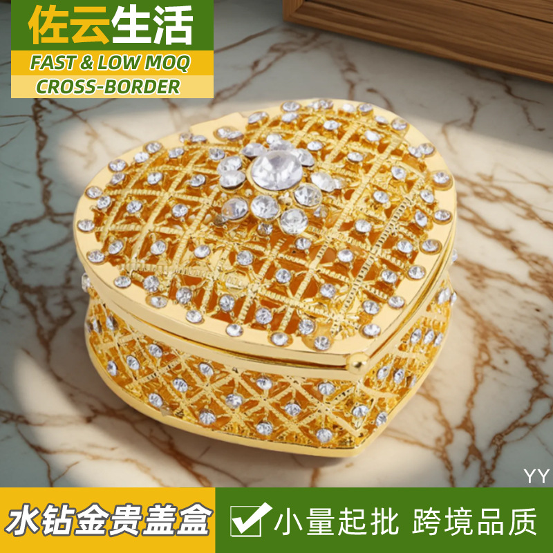 クロスボーダー中東風ハート型ジュエリーケース金色のダイヤモンド付き指輪ネックレスジュエリー収納ケース金メッキ装飾ケース