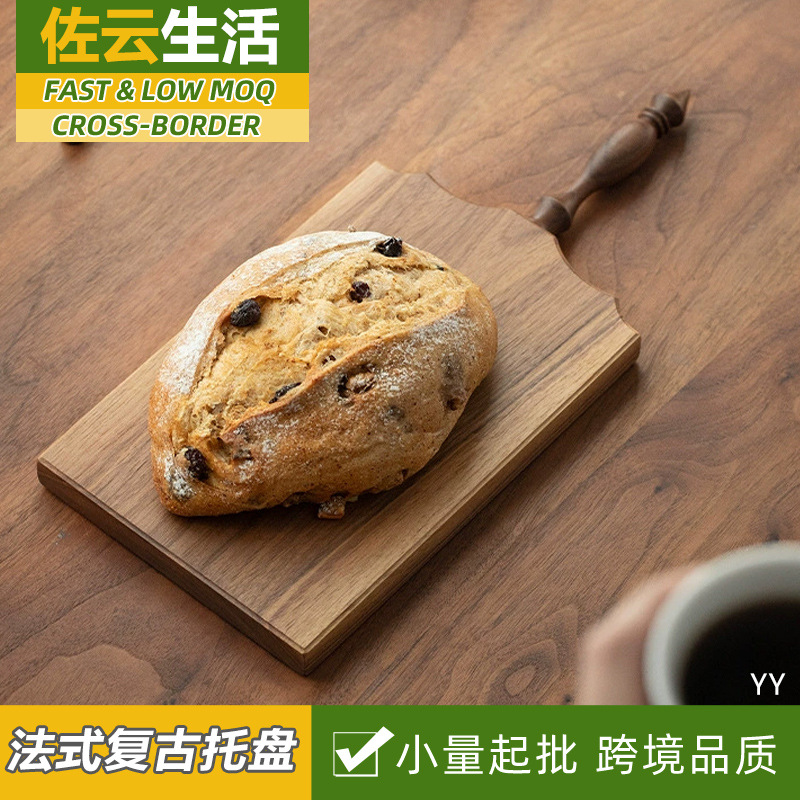 フランスのレトロなトレーのレストランの中古の実木のパンのデザートの皿のホテルの木製のステーキの食事の皿の両面のまな板