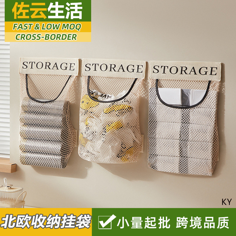 キッチンゴミ袋収納神器壁掛け式大容量収納袋入れビニール袋収納マジックテープポケット