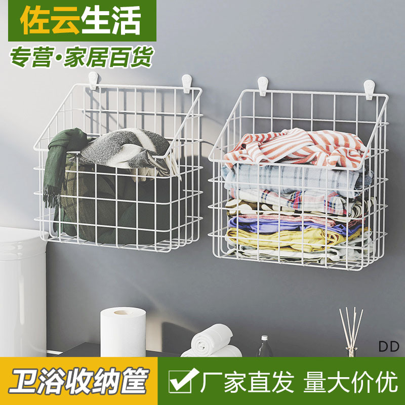 浴室は穴を開けない汚れたバスケットの金属金を透かして洗濯物を交換してバスケットの洗面用品を収納する浴室の棚