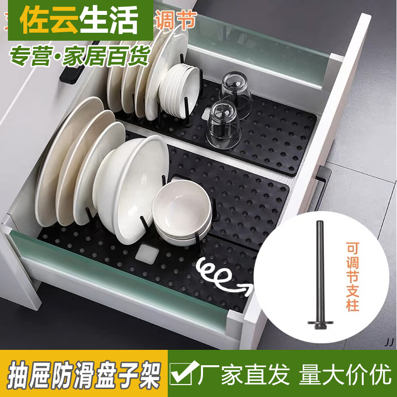 キャビネット内の水切り食器棚引き出し式キッチン家庭用伸縮調整食器皿トレー仕切り置物収納棚