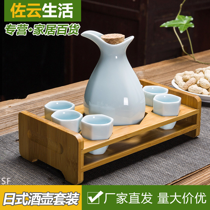 日本式の酒の壺のセットの白酒の分酒器は古風の酒場の日本の料理の清酒の壺の青磁の杯の復古の小さい酒の杯に似せます。