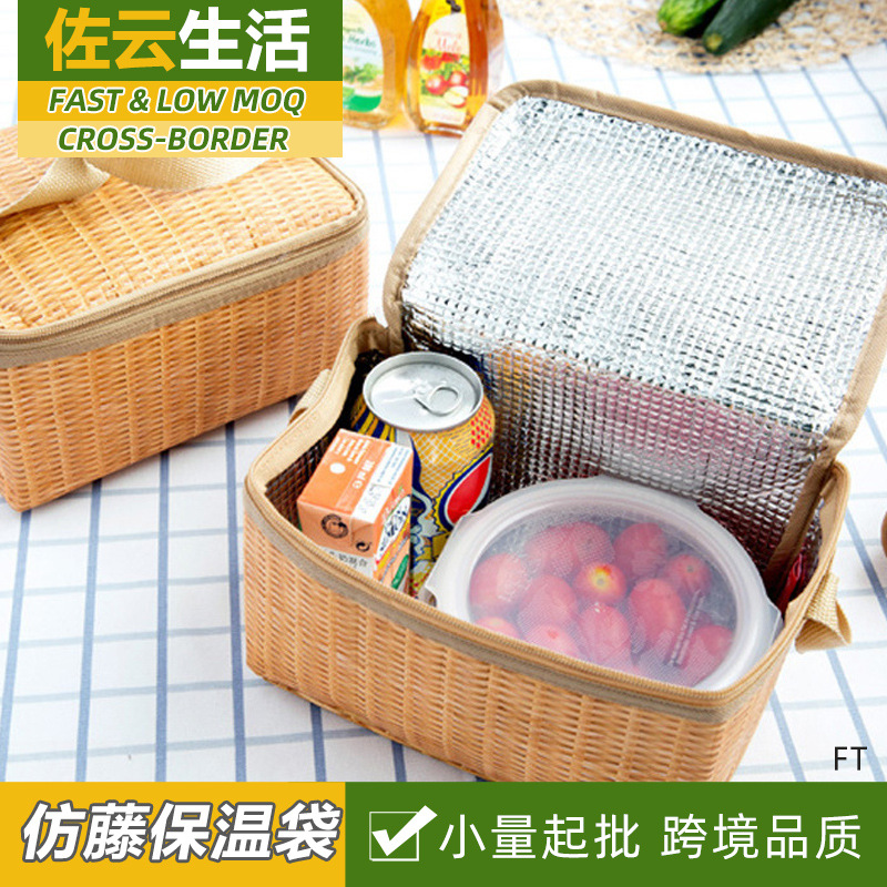 日本式模造藤保温バッグ弁当箱ハンドバッグ手持ち布袋学生ランチバッグ屋外防水ピクニックバッグ
