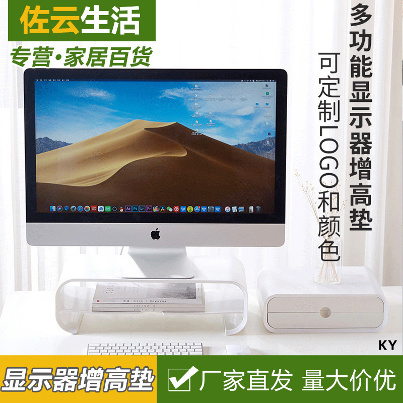 デスクトップパソコン高くなった棚の事務デスクトップの収納棚のディスプレイは高架ベースのスタンドを持ち上げて棚を高くします。