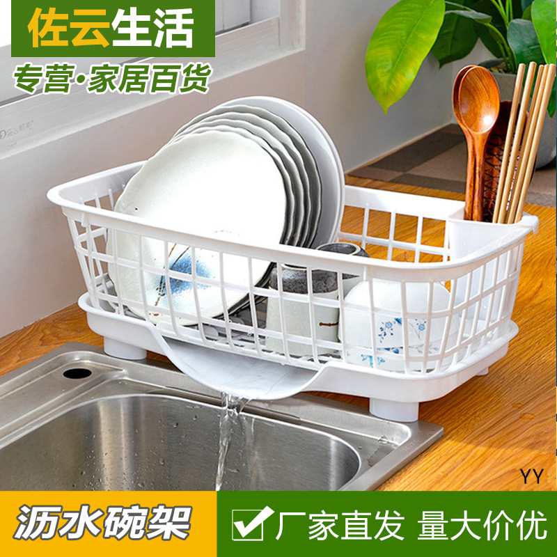 食器収納棚に食器箱を入れて、水を切って物を置く棚を持っています。