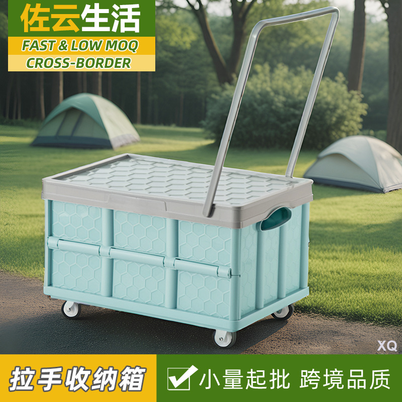 ハンドル付き収納ボックス車輪付きプラスチック大サイズの服玩具折り畳み寮整理箱自動車トランク
