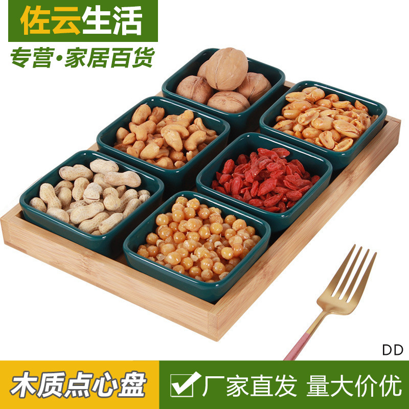果物皿キャンディー箱家庭用戸外客間ドライフルーツ皿間食収納箱分格瓜子木製菓子皿