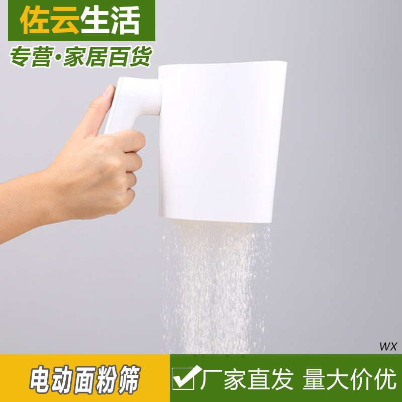 キッチンレストランの白いプッシュ式の電動小麦粉ふるいは便利です。
