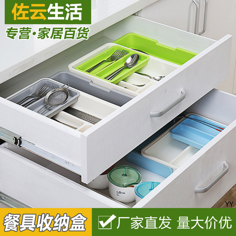 日本式キッチン引き出し伸縮収納ケース取り外し可能内蔵仕切り箸ナイフとフォーク食器分類整理ケース