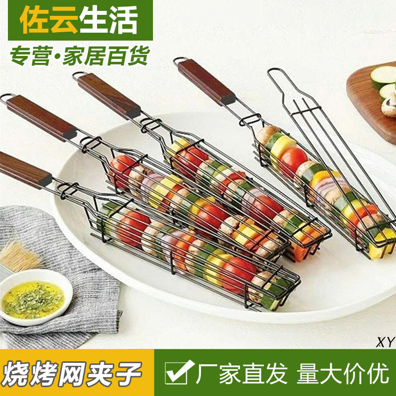 淄博バーベキュークリップステンレス肉丸類野菜クリップ角型グリル屋外キャンプbbqバーベキューネットクリップ