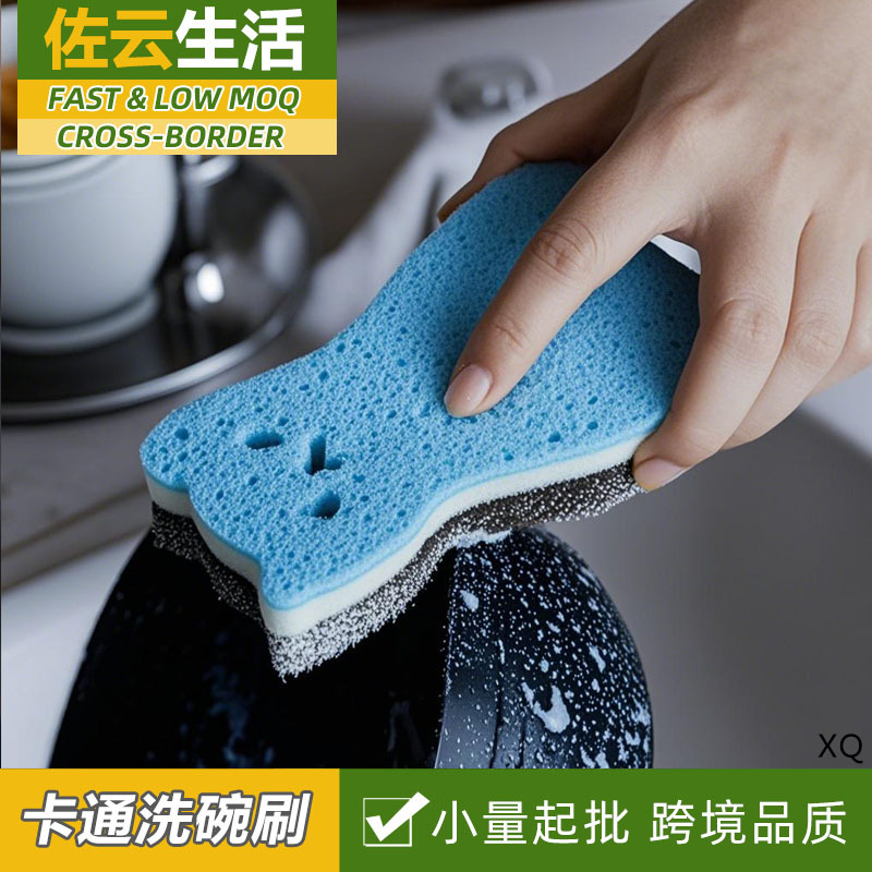 4枚入りのアニメ猫の皿洗いスポンジは台所の両面を拭きます。