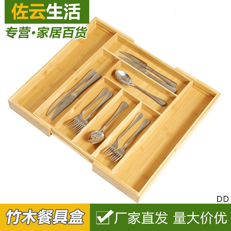 竹の木の食器箱のレストランの台所のナイフとフォークの分類の引き出しの箱はオフィスの文房具の収納の整理の箱を重ねることができます。