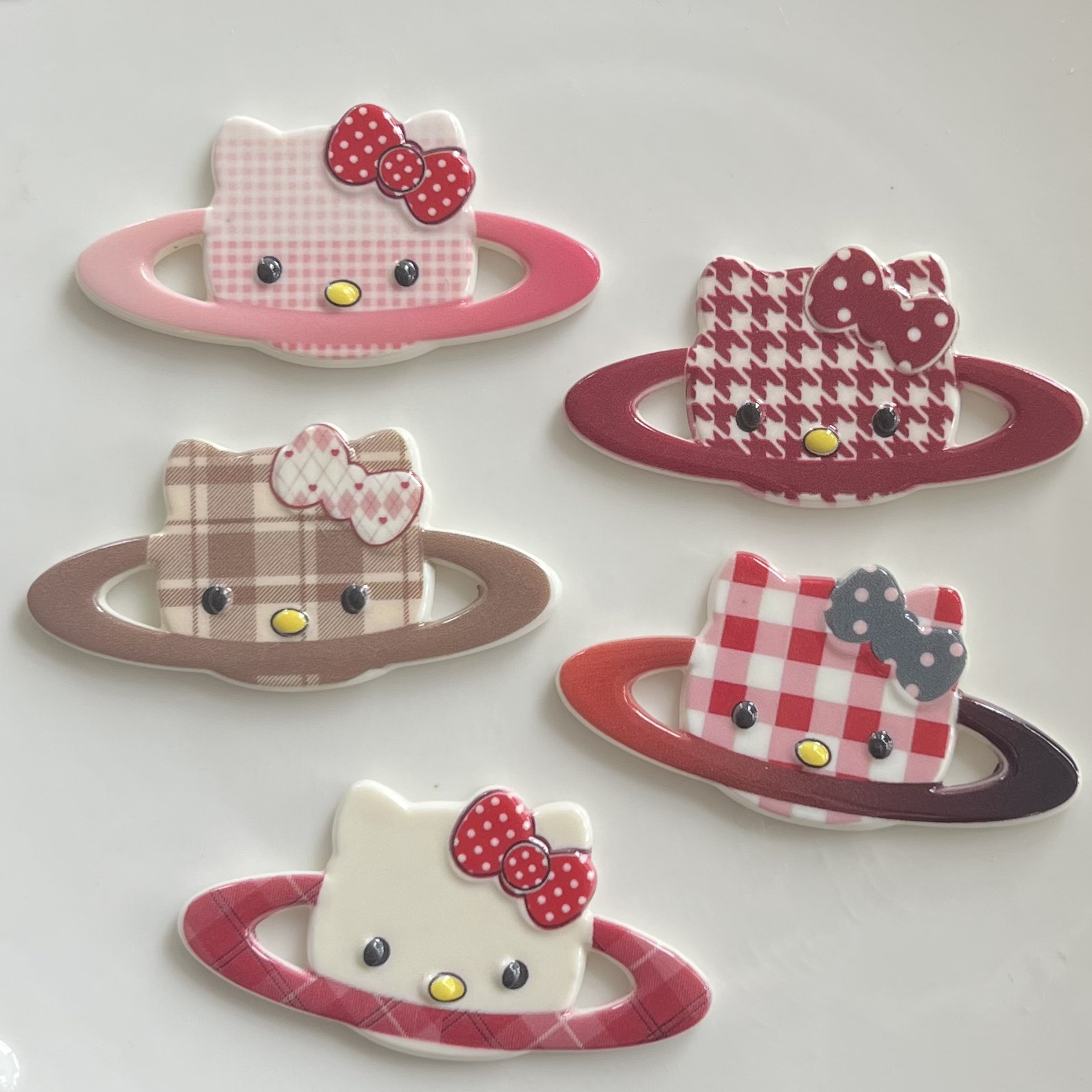 かわいい新型の宇宙船kt猫のプリントの格子縞のDIYの頭飾りの携帯電話の携帯電話の貼る装飾の卸売りの手作りの材料