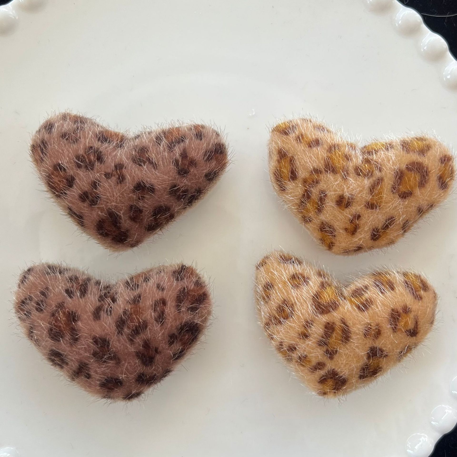 ヒョウの紋様の愛の綿のぬいぐるみのアクセサリのDIYの頭の装飾の携帯電話の携帯電話のケースは穴の靴の秋冬の新型の桃の心の装飾を飾ります。