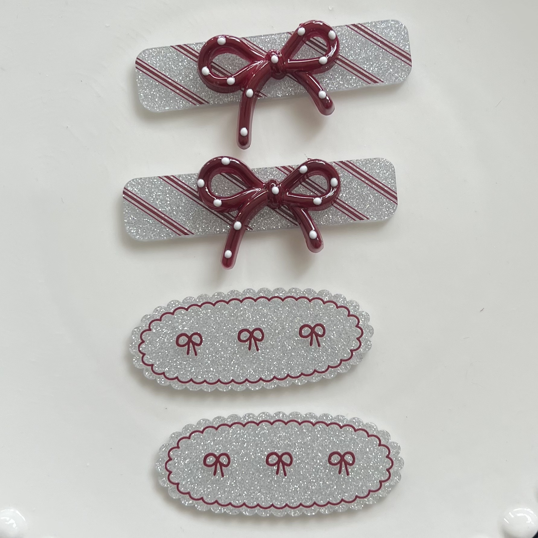 新しい精巧な銀色のワインの赤い蝶結びの楕円の長方形のアクリルの部品のDIYの髪飾りのヘアピンの手作りの材料
