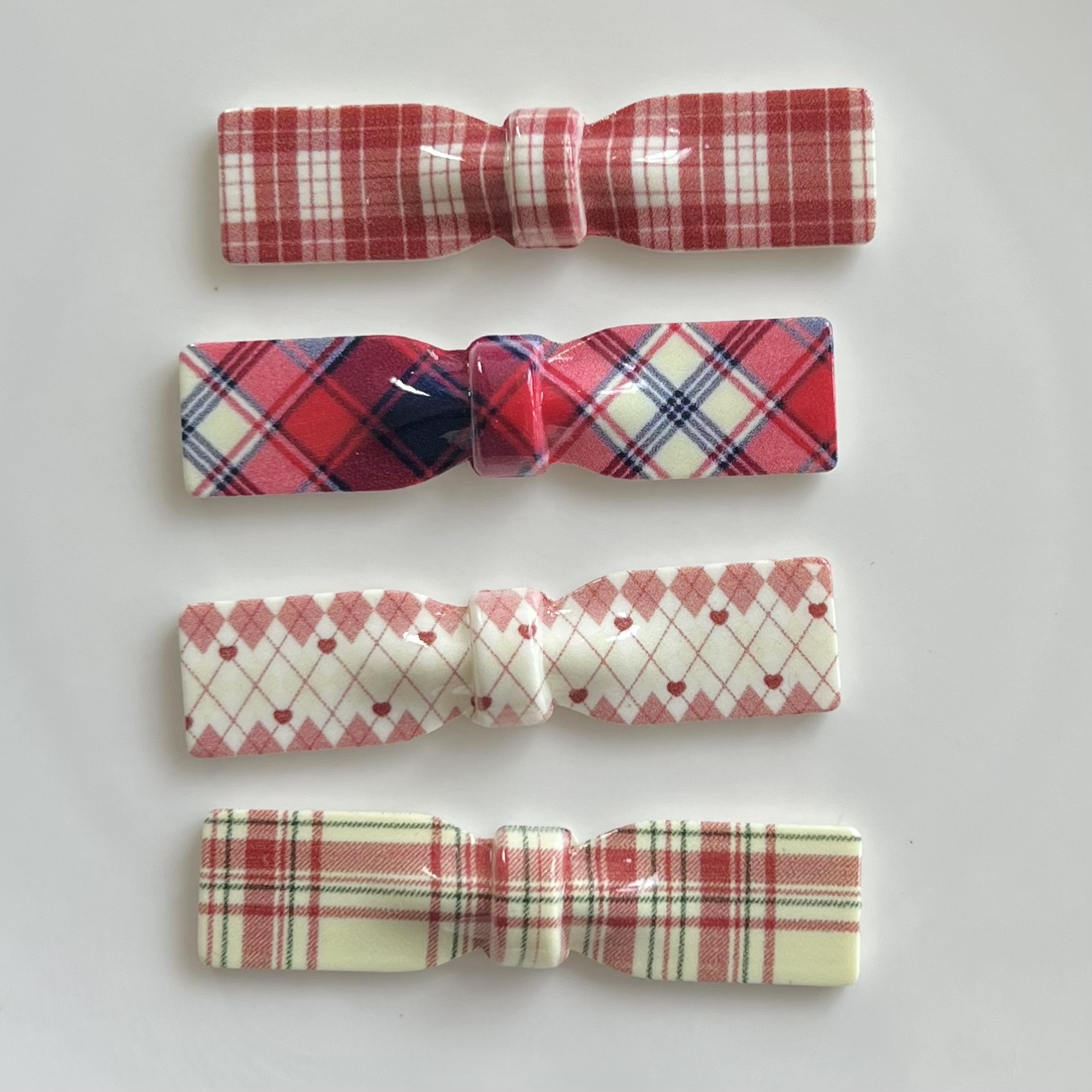 かわいい秋の冬の酒の赤い格子の猫の頭の蝶結びの小さいサイズの部品のDIYの手作りの材料の髪飾りのヘアピンの携帯電話のケース