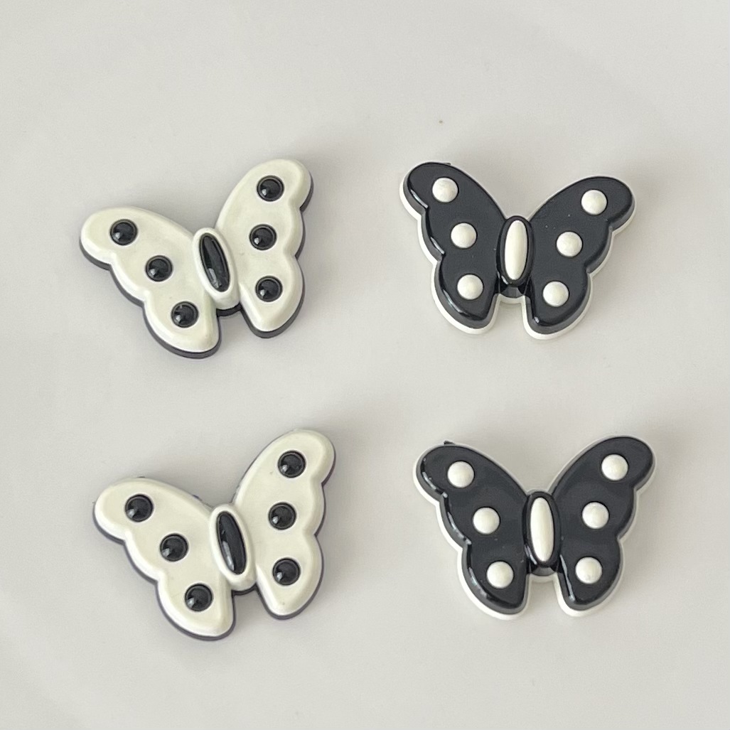 黒と白の点の蝶の部品のDIYの髪の飾りの輪のクリームのゴムの携帯の携帯電話の部品の穴の靴の手作りの装飾のバッチ