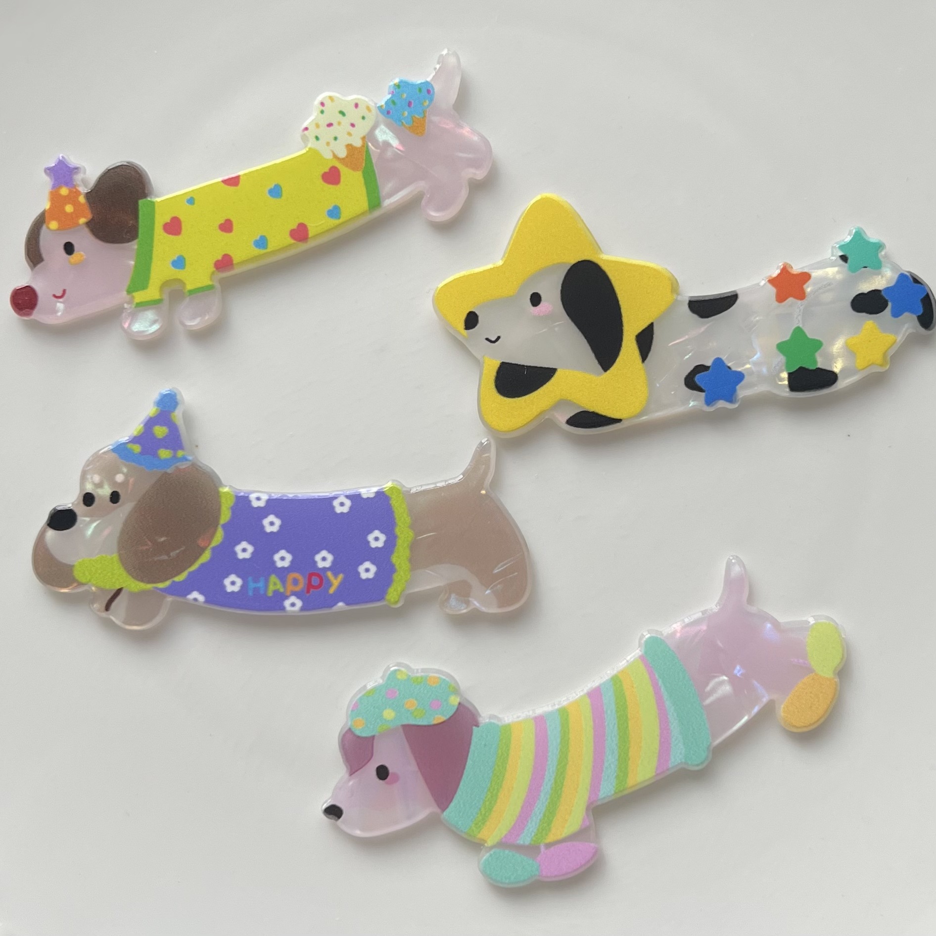 かわいいレーザーの長い星の子犬のアクリルの部品のDIYの頭の装飾の携帯電話の携帯電話のケースは穴の靴を飾ってバッチを配合します。