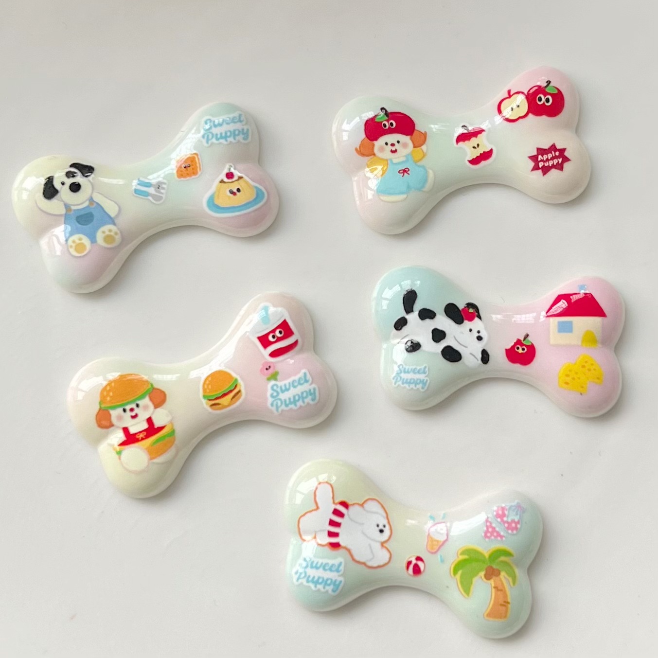 グラデーションのかわいい子犬の白い骨の部品DIYクリームの携帯電話のカバーの部品の穴の靴の材料の卸売り