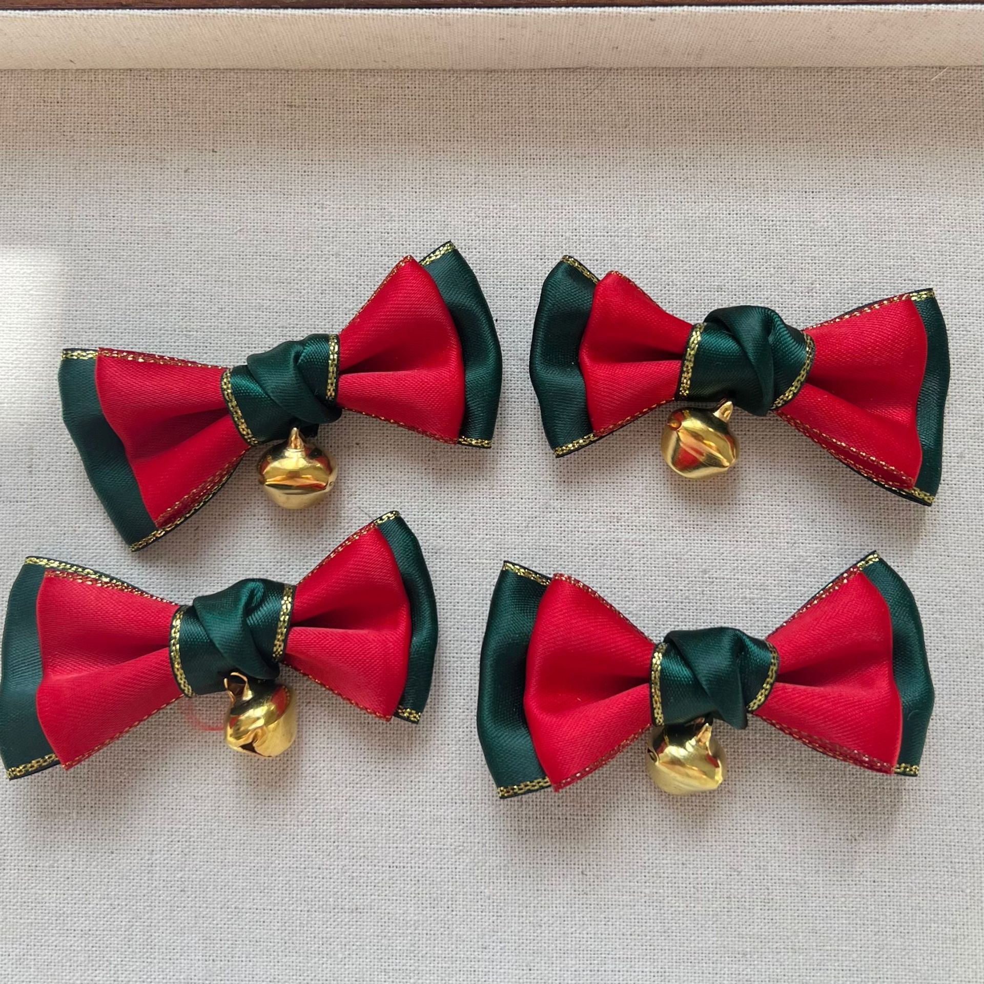 クリスマスの祝日の鈴の赤緑の蝶結びのdiyの髪飾りのネクタイのアクセサリーの靴の花の装飾のギフトボックス