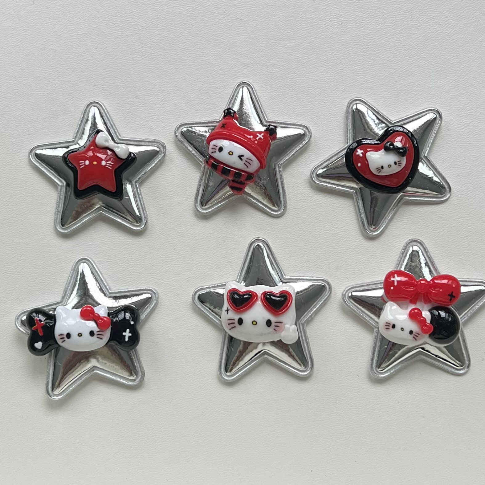 甘いクールな黒の赤い子猫の銀色の星の部品のDIYの頭の装飾の携帯電話の携帯電話の携帯電話の靴の花の部品の現物の卸売りの漫画