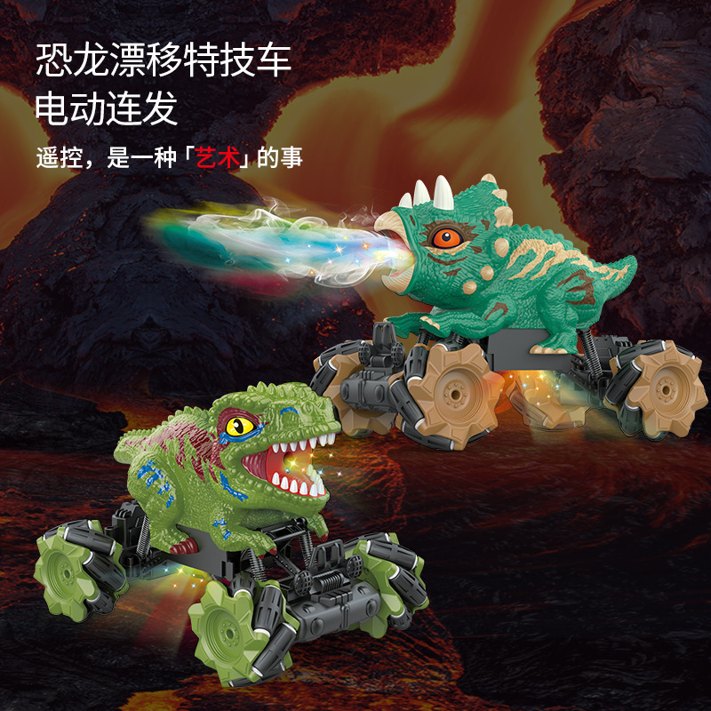 子供のリモコン恐竜おもちゃの車横断ドリフトスプレー水爆弾スタントカーハンドルティラノサウルストリケラトプス卸売