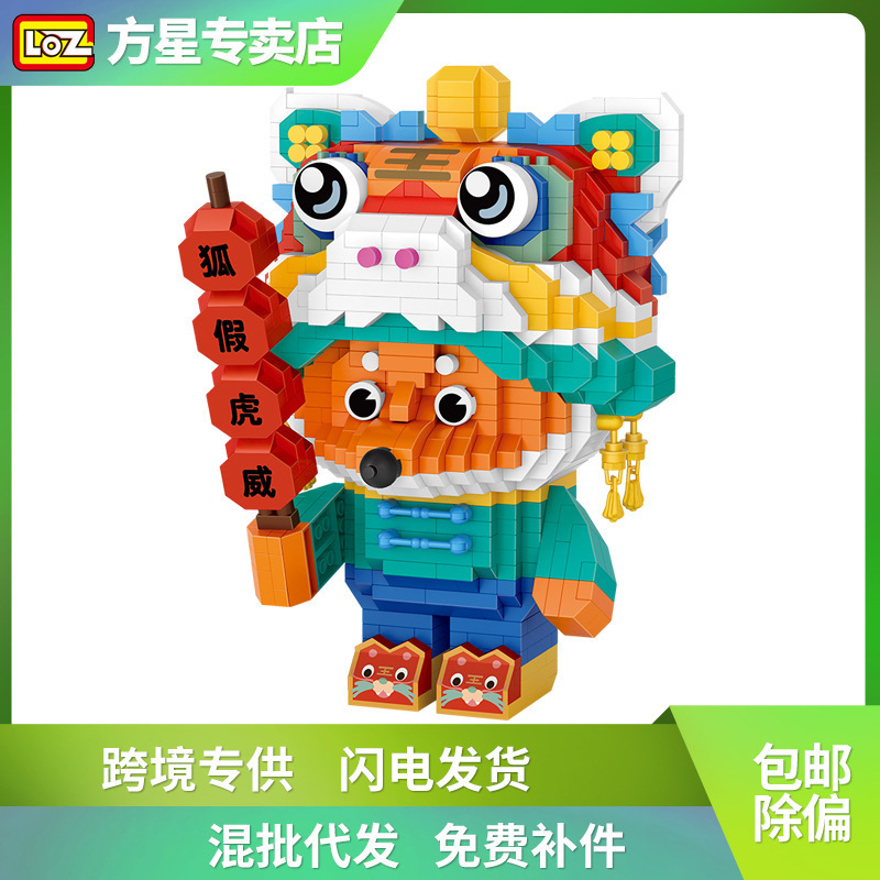 送料無料 loz リズフォックス偽タイガーチャイナスタイルビルディングブロックおもちゃマイクロダイヤモンド粒子組み立て子供のギフトクロスボーダー