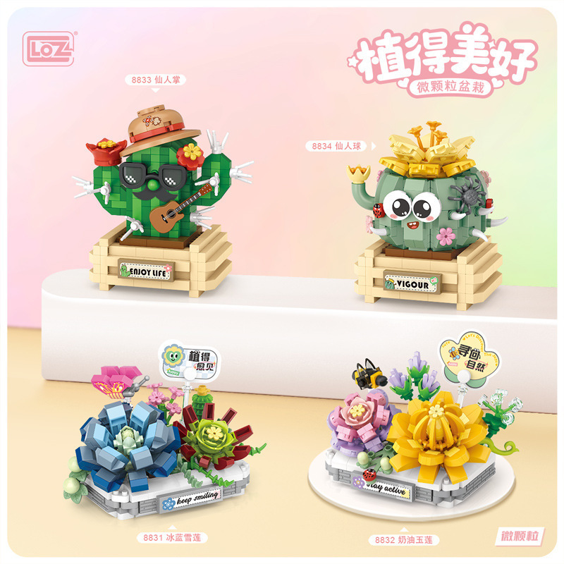 LOZ ビルディングブロック花シミュレーション多肉植物装飾品小さな粒子組み立ておもちゃサボテン子供のギフトクロスボーダー