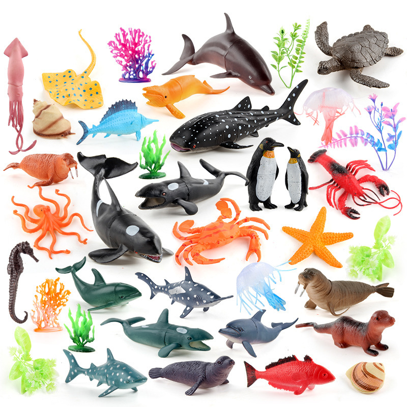 クロスボーダーシミュレーションミニ海洋生物モデルイルカタツノウオタツノオトシゴタコロブスター静的装飾品セットおもちゃ