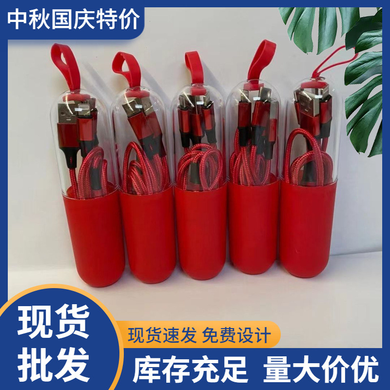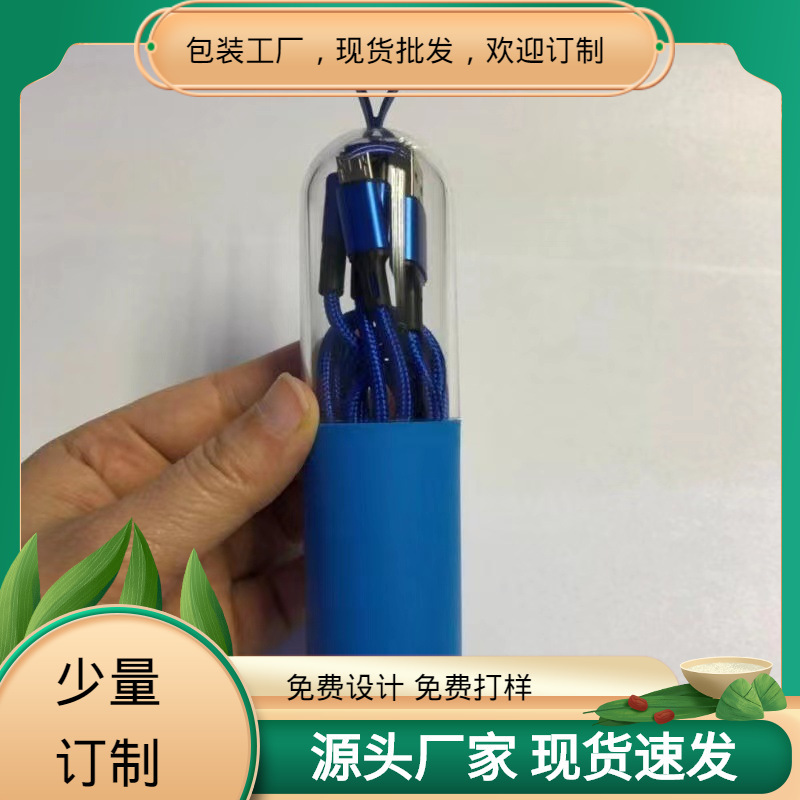 携帯電話充電ステーションの組み合わせは二合一三合一充電器の透明試験管にデータケーブルを入れて全部包装します。