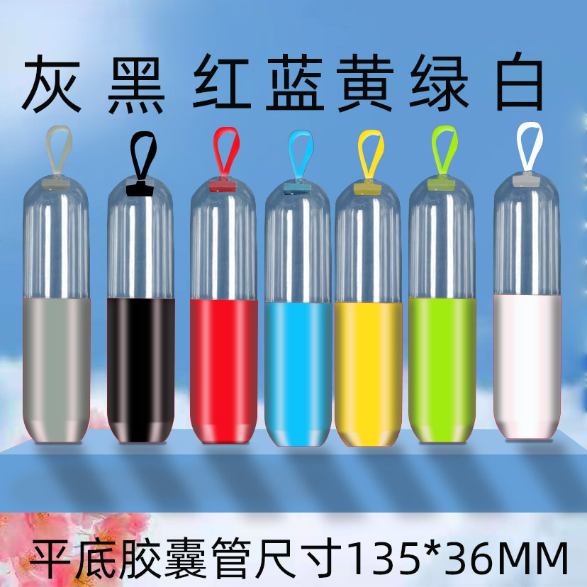 赤いカプセルのお祝いの贈り物透明な管の蓋は瓶の防塵をつります。
