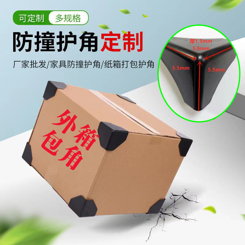 プラスチックの箱の角の3面の家具の包装の黒色の衝突防止の直角の包装の角のプラスチックの角の包み