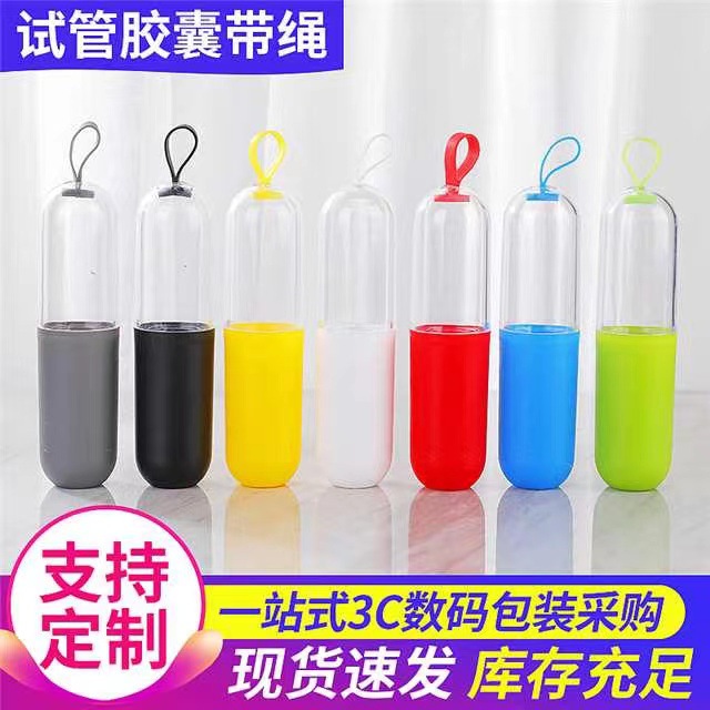 透明プラスチック試験管カプセル瓶の模様文字カラー糸印刷データ線イヤホン靴ひも瓶包装