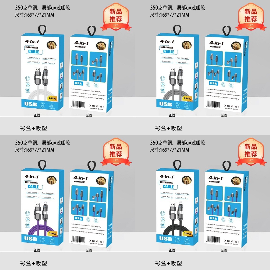 2対2磁器データケーブルフォーインワン包装箱シルバーカードカラーボックスPD27Wダブルタイプc65W PDケーブルボックス