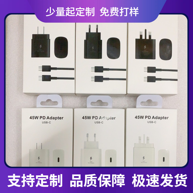 サムスン ニュートラル 45W 25W 英国標準 米国標準 欧州標準 ツーインワンパッケージ 25W 45W データケーブル充電器セット