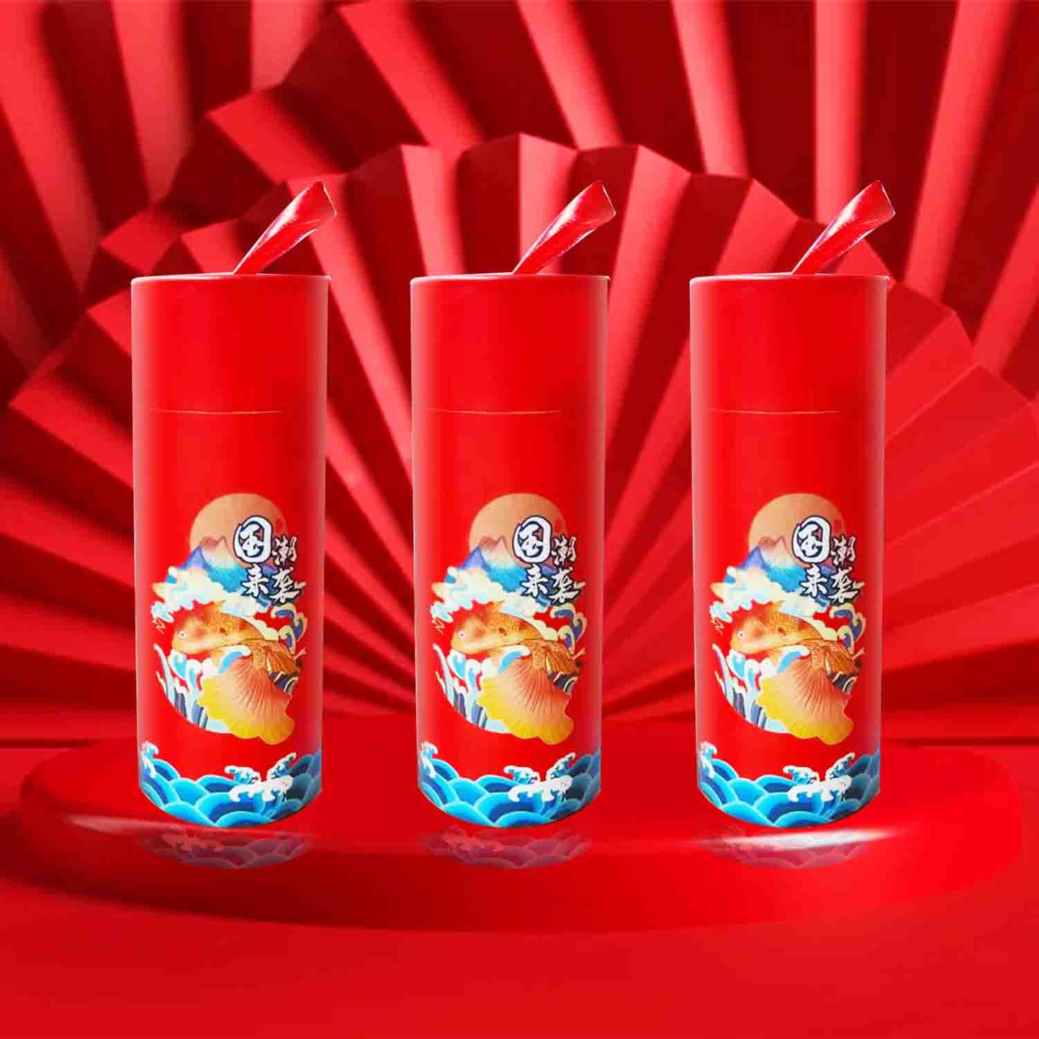 国潮が来た赤いお祝いの紙筒紙缶円筒包装箱プレゼント銀行の年越しプレゼント包装