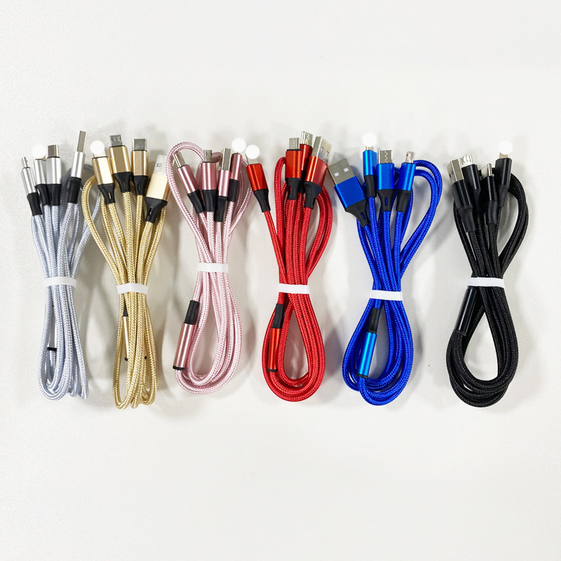 ナイロン一分三データ線3in1充電線三合一はtype-c一線三用ギフトタイプに適している