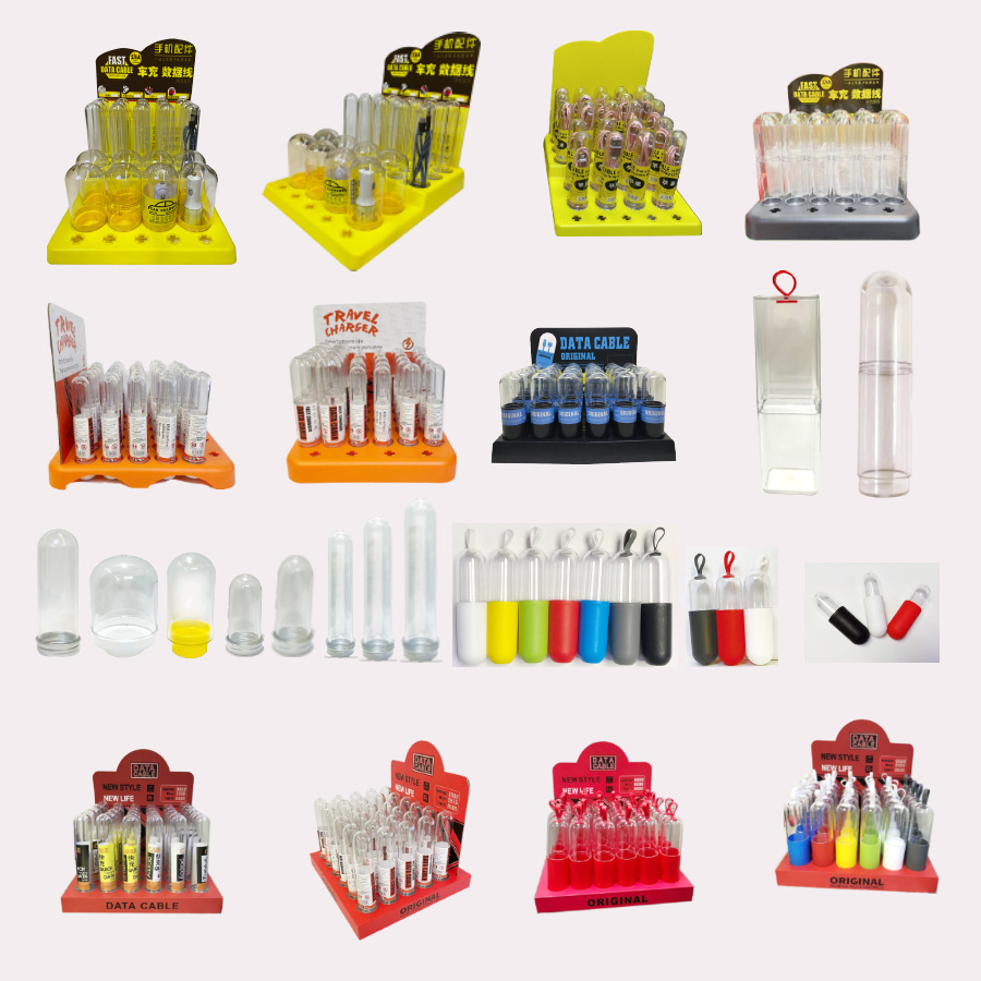 メーカー卸売り充電器透明大管イヤホン包装データ線包装管細い試験管セット展示