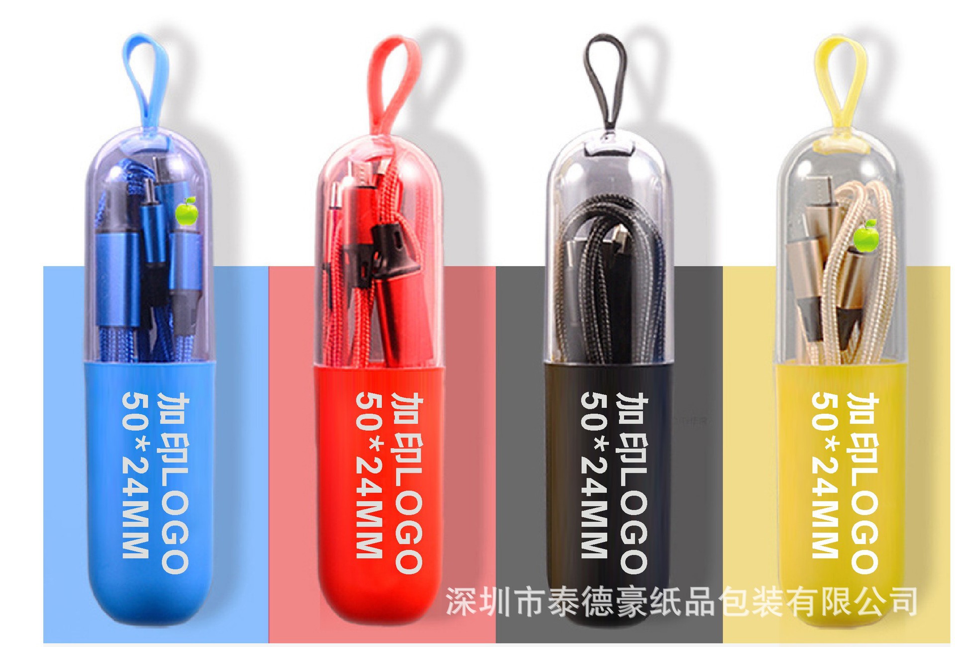 新しい携帯電話データケーブルギフトカプセル錠剤クリスタルボックス包装アンドロイドUSB充電ケーブル透明包装ボックス