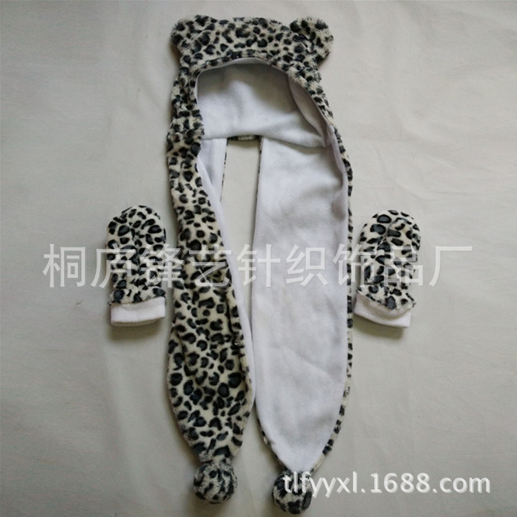 個性的な子供ファッションヒョウ柄の耳保護帽冬の屋外旅行保温帽子手袋2点セット