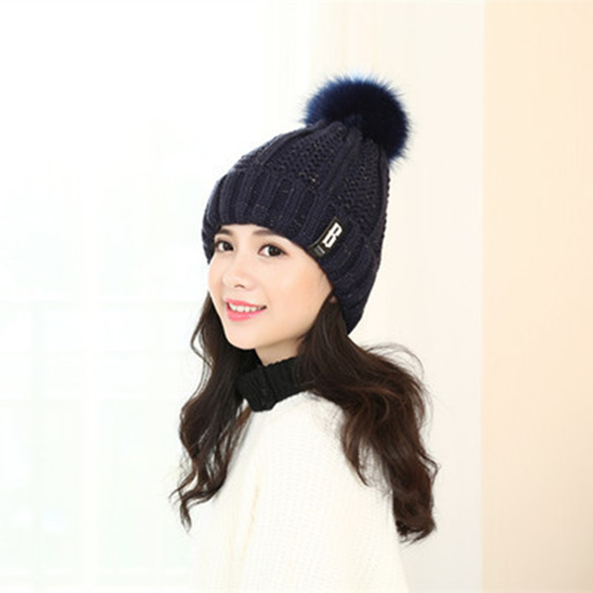 新型ファッション欧米の女性B字は秋冬に毛玉の帽子を厚くします。