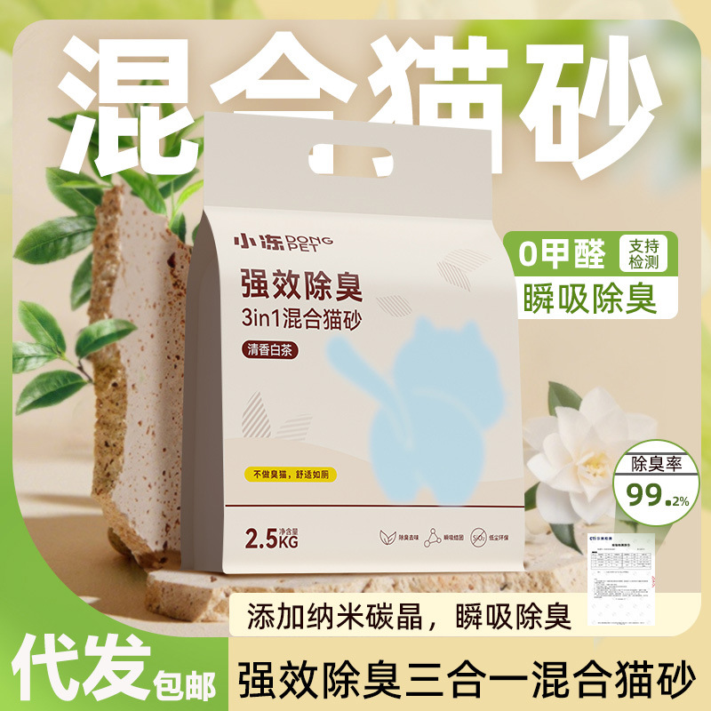 混合猫砂豆腐ロット包郵便白茶香消臭快結団鉱砂ベントナイト猫砂混合砂
