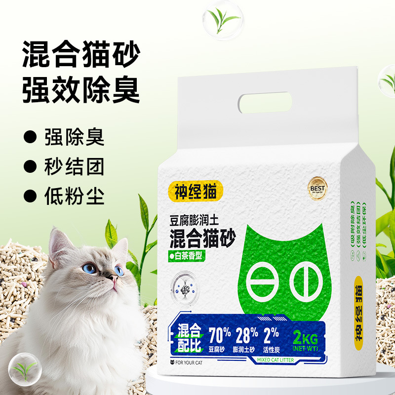 神経猫ミックス猫砂白茶香り豆腐砂ベントナイト低尘结団消臭猫トイレ清洁用品