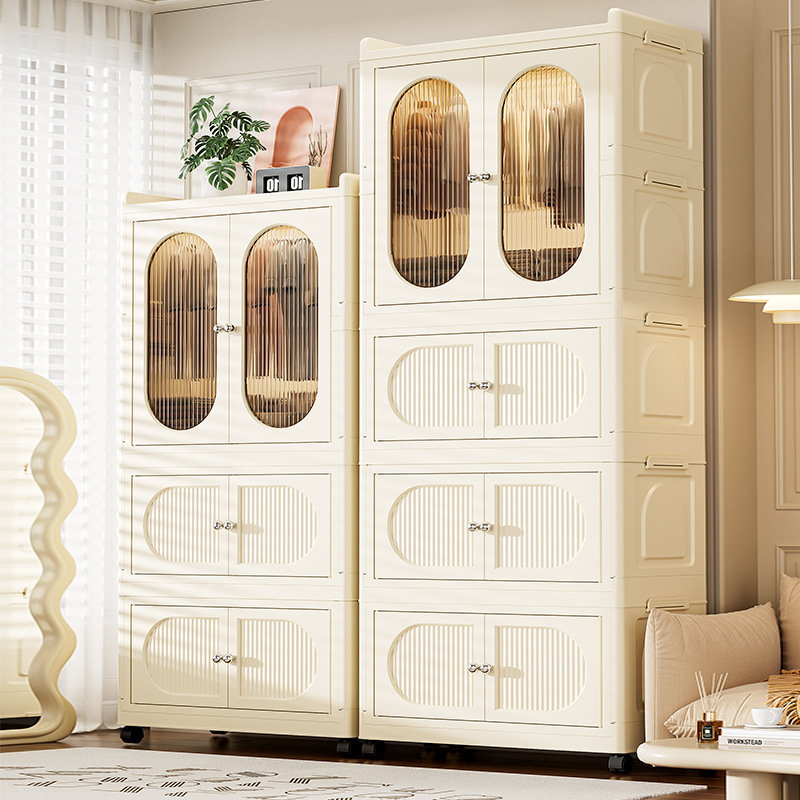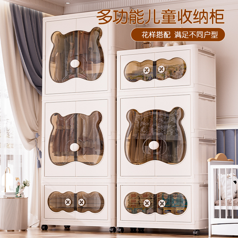 25年新型収納棚家庭用取付不要折りたたみ式赤ちゃん服収納ダブルドア収納棚ロッカー