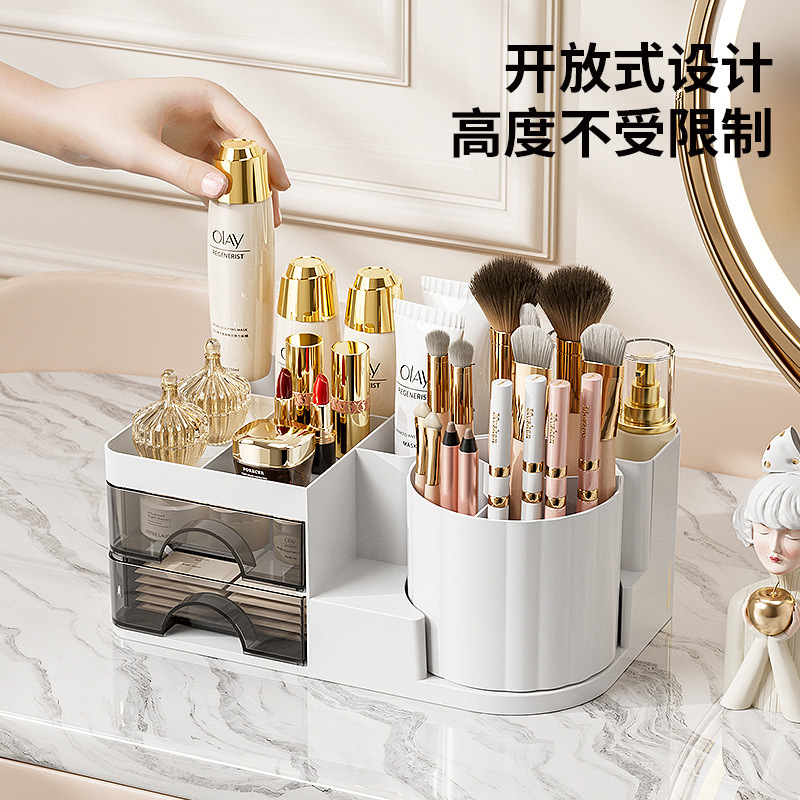 25 年新しい化粧品収納ボックスホームデスクトップコンパートメント収納ツーインワン化粧品収納チューブ整理ボックス